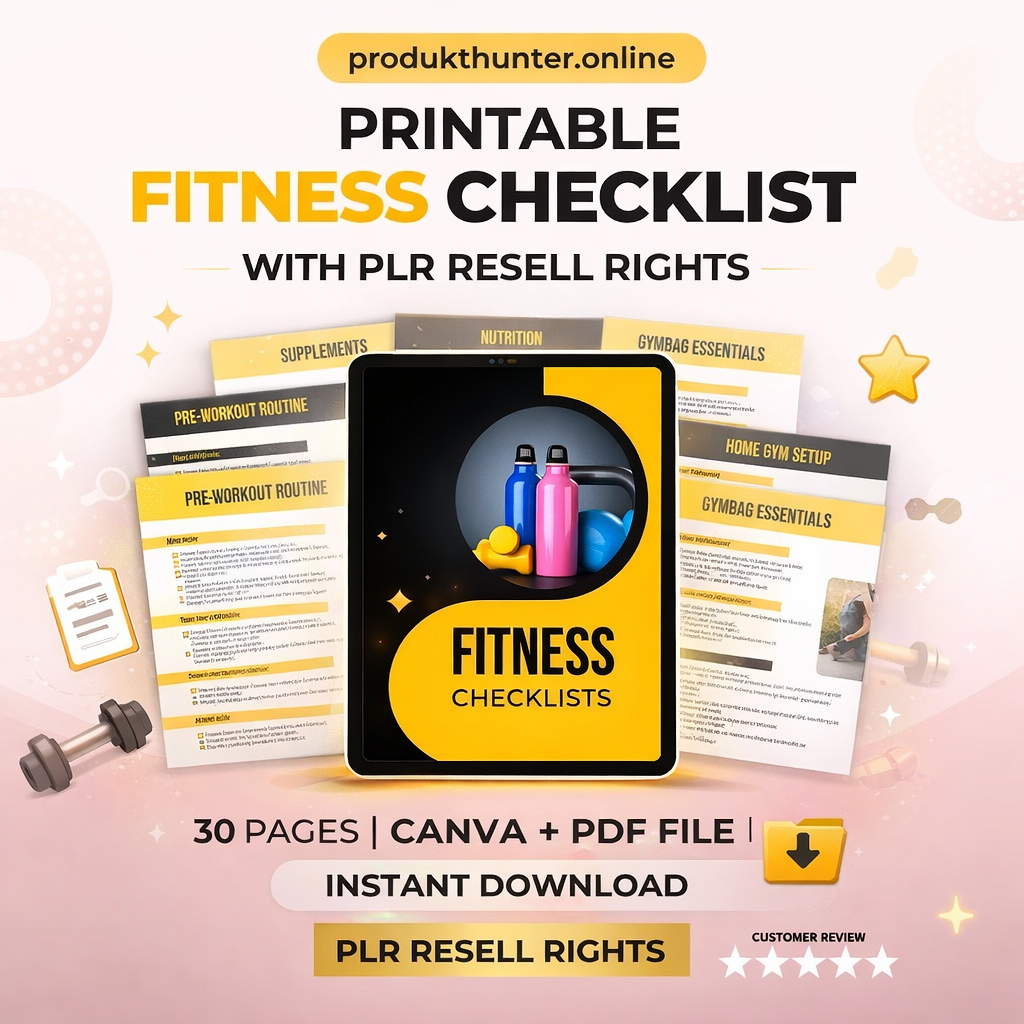 Fitness Checklist – PLR Resell Rights | Coaching Printable | Canva + PDF | Fitness Binder | 30 Pages